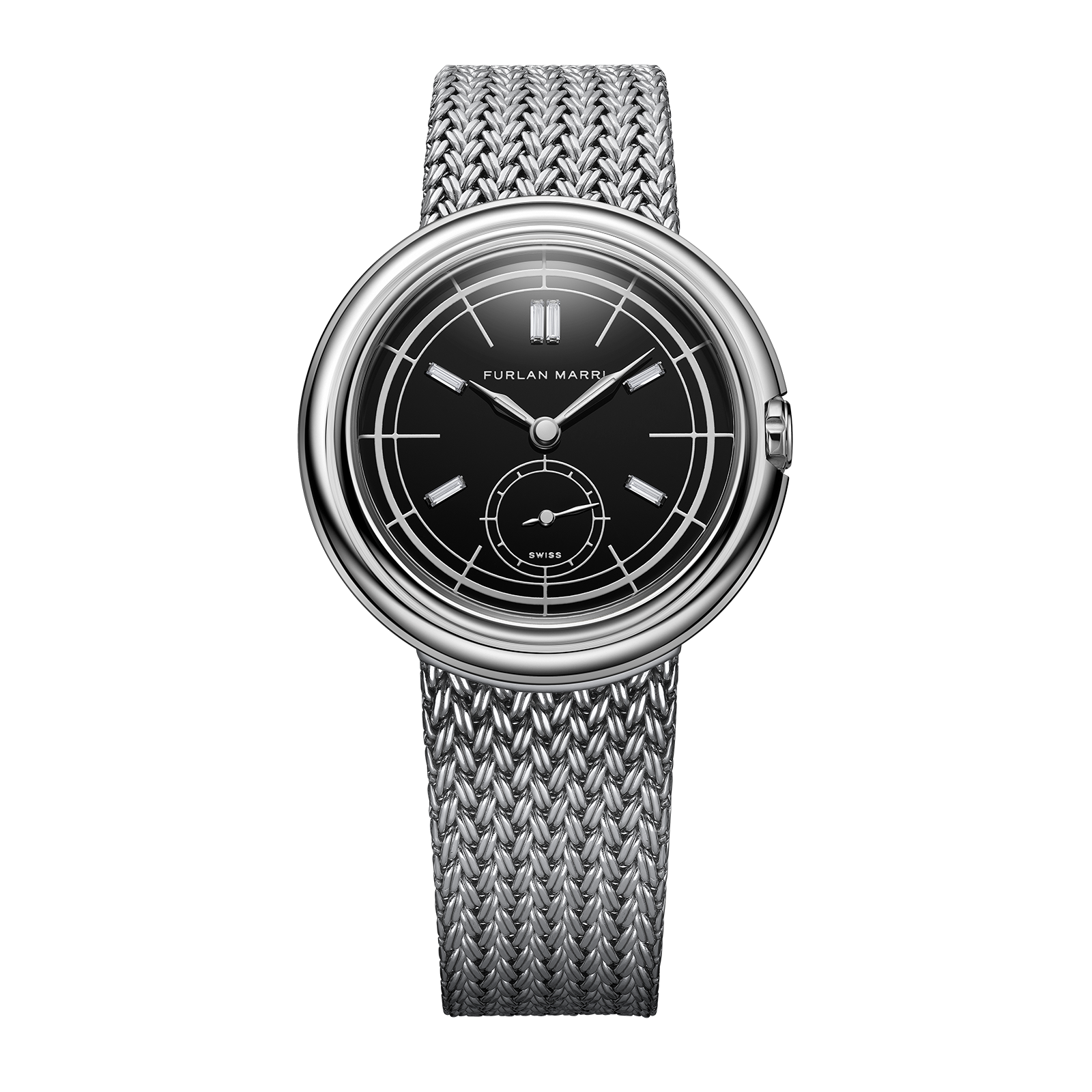 38mmケースのモダンなディスコ・ヴォランテ。ラボ・グロウンダイヤモンドをあしらったオニキス文字盤が特徴的。ジュネーブで再設計され、手作業で完全に仕上げられたPeseux 7001手巻き機械式ムーブメントを搭載しています。