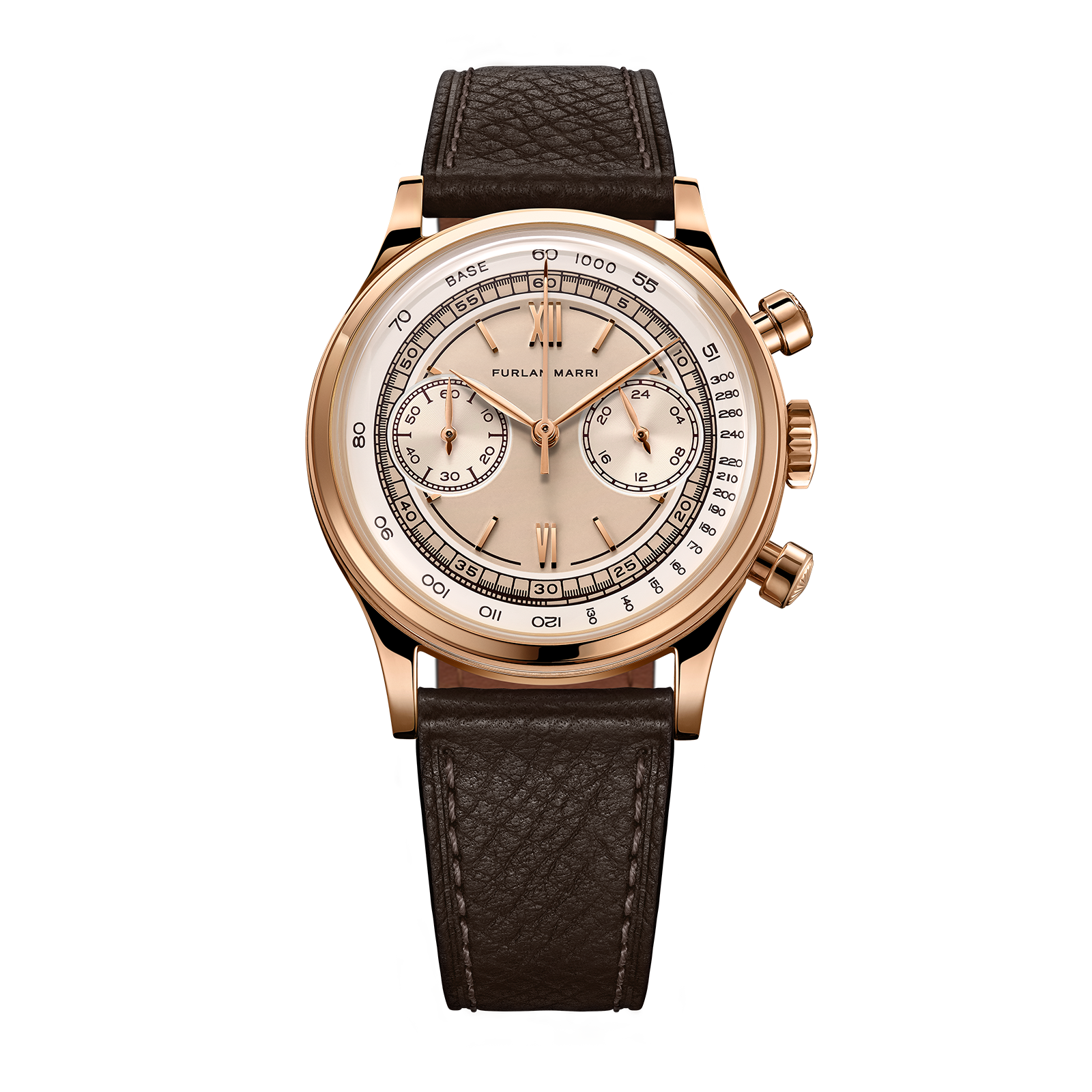 エングレービングが施されたプッシャー、内側にペルラージュ仕上げと深いエングレービングが施された10角形のねじ込み式ケースバック、外側にはサーキュラーブラッシュ仕上げとポリッシュ仕上げが施され、ロゴとケースのリファレンスナンバーは深くエングレービングされています。ドーム型で湾曲した針は、この38mmケースの腕時計に、さらに魅力的なディテールを添えています。
